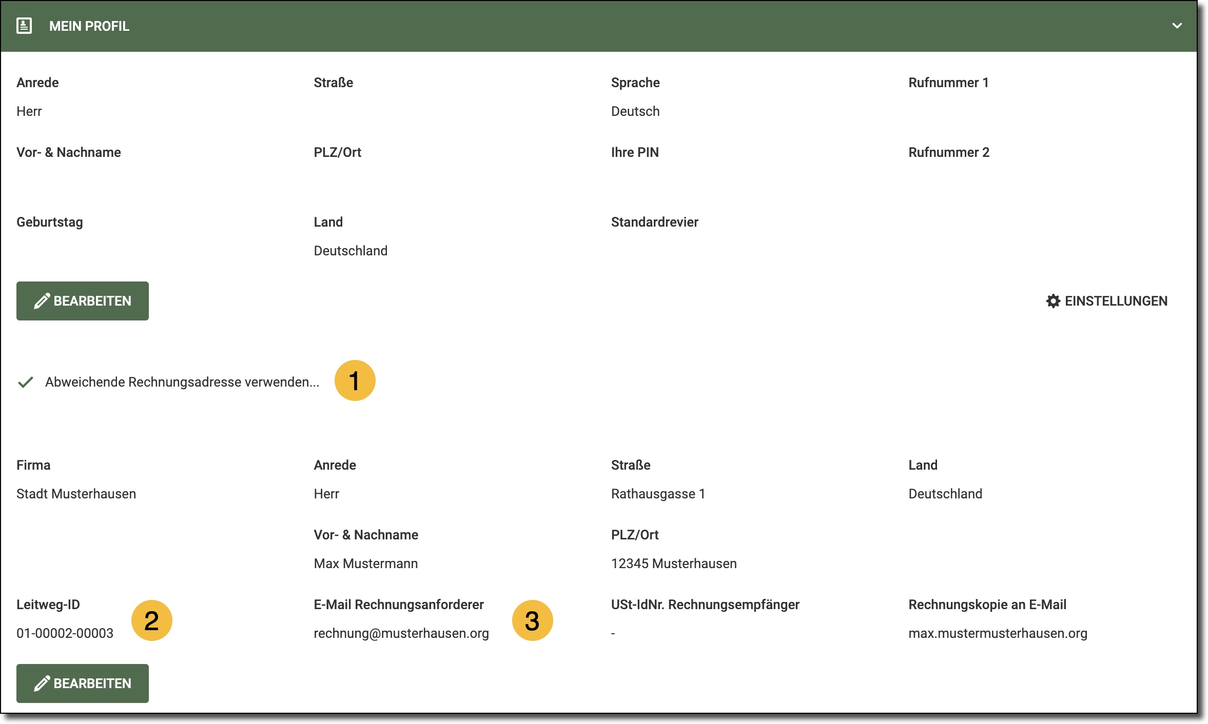 - Geben Sie hier die Leitweg-ID ein.